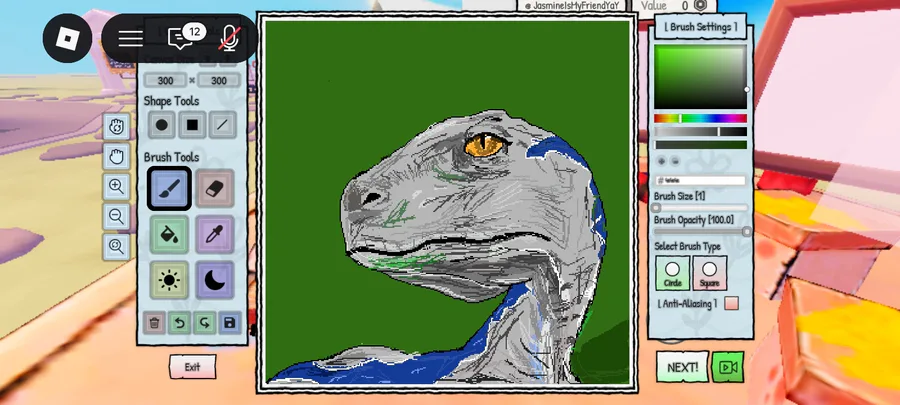 I drew blue on roblox which took 1 hour and 25 minutes