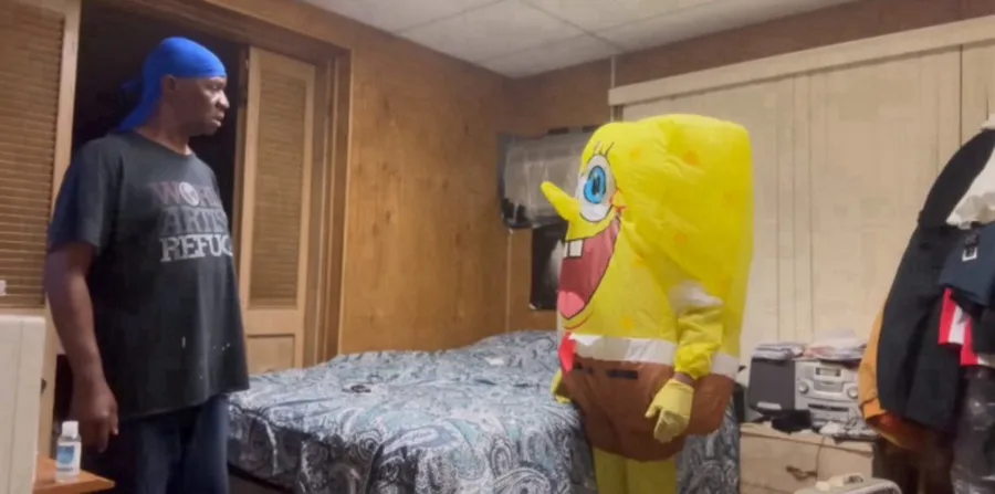 spongebob breaking into someones house made with sora 2