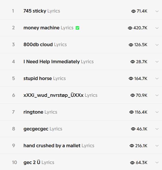 unfortunately my parody of the 100 gecs album is being cancelled and is being replaced with 1000 rappers