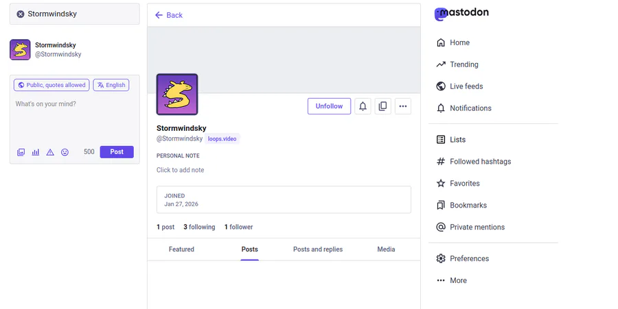 Since Mastodon.social and Loops use the same system, I realized that I can even see my own posts on Mastodon, so outside of Loops