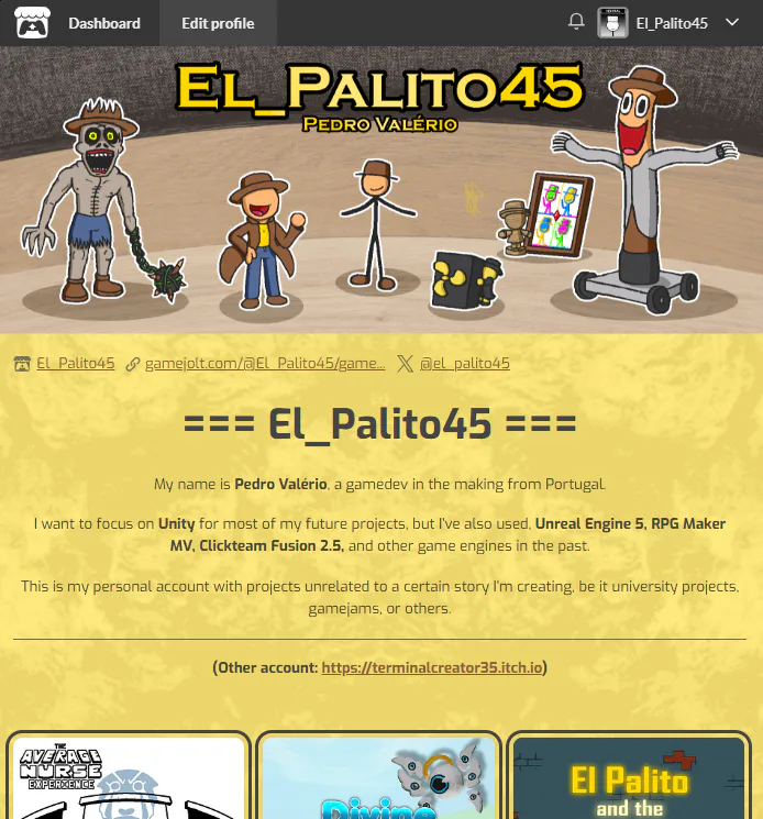 https://el-palito45.itch.io (Group projects + gamejams)