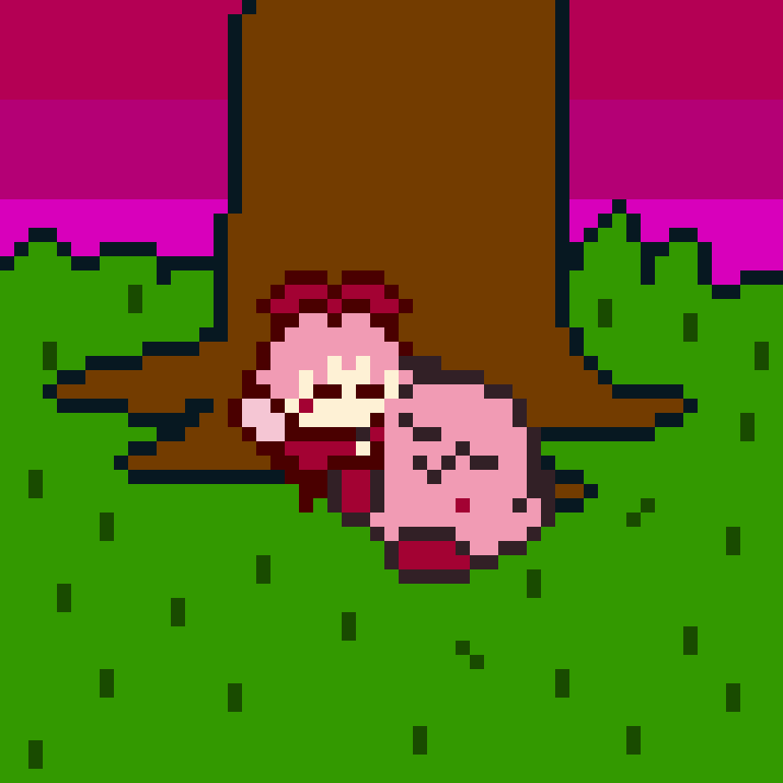 Like I said I'd make yesterday, here's a short animation of Ribbon giving Kirby a kiss-kiss using my 8-bit sprite of her. I wish it came out better but it's alright ig