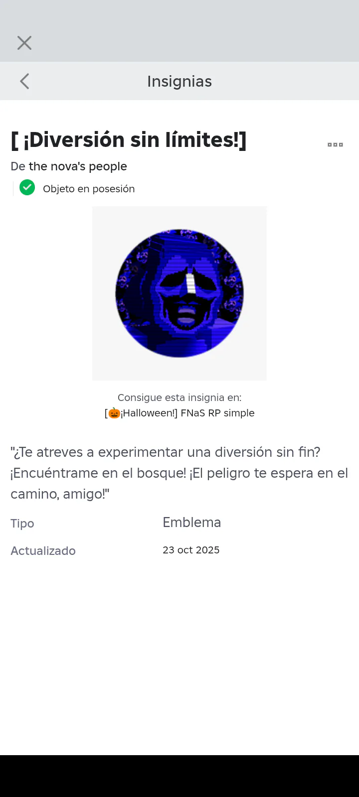 And as an extra I was able to get the "Rise of the Diabolical" Badge from Halloween 2024 or 2023, I don't remember, but here I leave you all the characters that reward you.