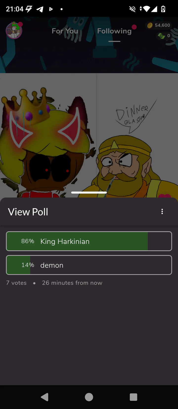 I am guess king harkinian wins