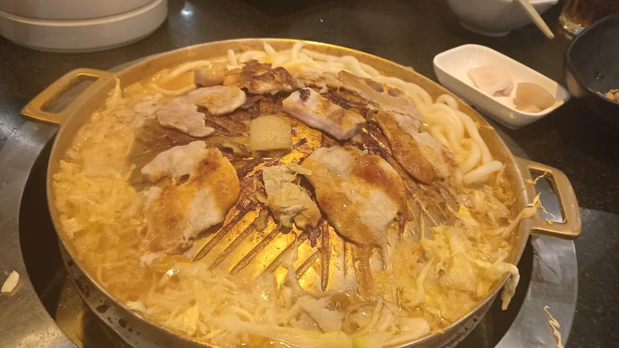 Having lunch with sushi and udon