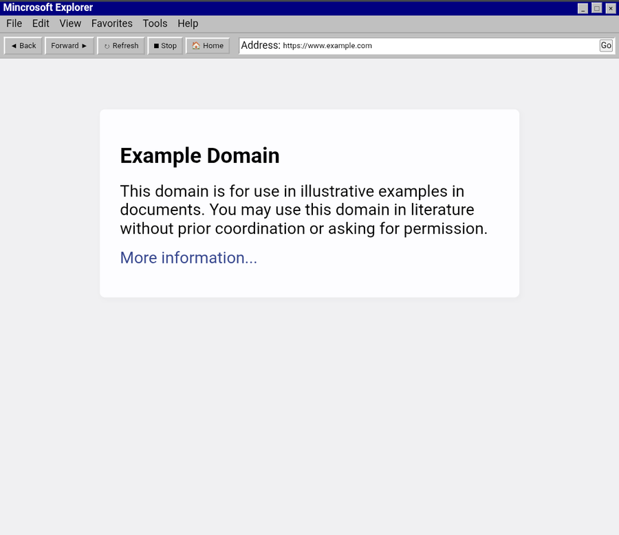 I was working on a Windows browser like from the 90s that you could use it has some kinks that I need to work out but it's fine it's called mincrosoft explorer (yes mincorsoft) if you want here the official link