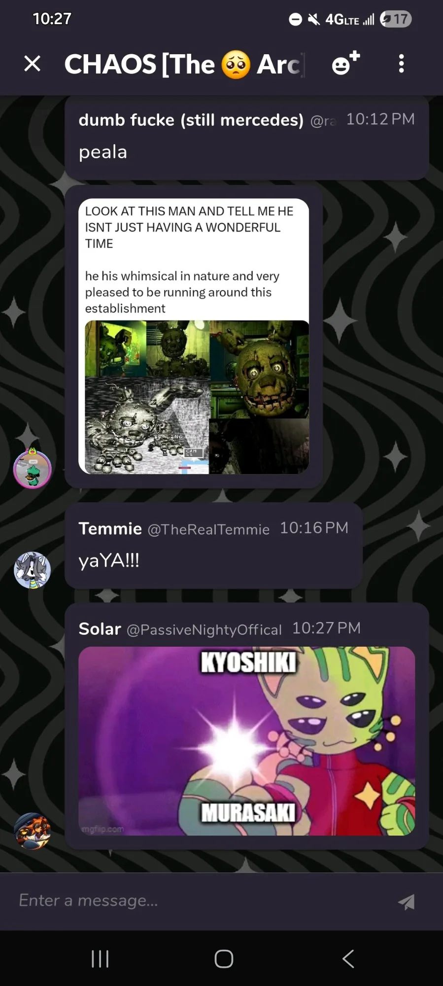 In each GC, I usually never chat until I I decided to send ONE thing and people are like, "HOLY SHIT! THEY'RE ALIVE?! Who are they?"