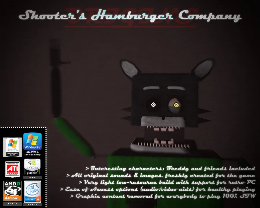 Last of all, Freddy and friends are not my property, they belong to Scott Cawthon. Putting them in the game just ruins the "100% original" aspect I was going for. (For some, since Freddy and friends are in way too many fangames.)