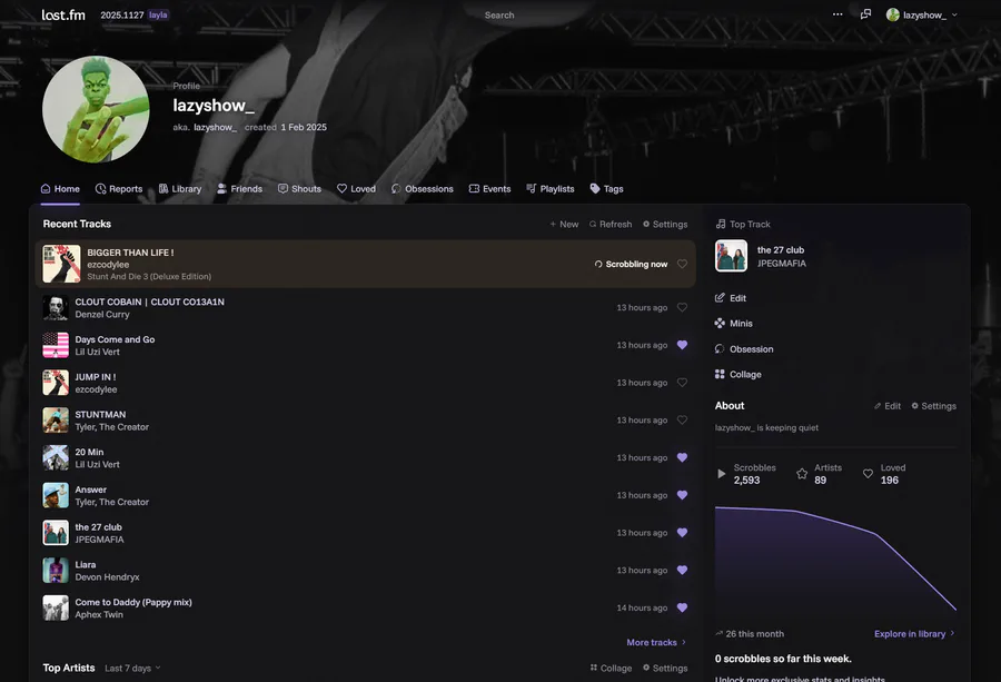 this website bro let me look at my dogshit music taste