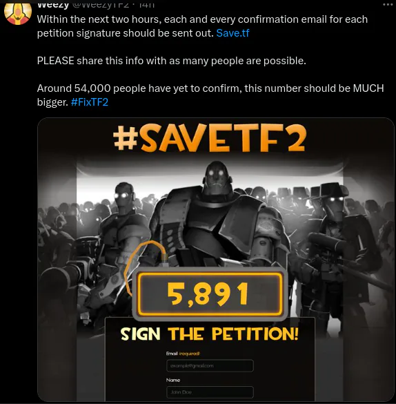 we are not letting this game die! sign petition at save.tf