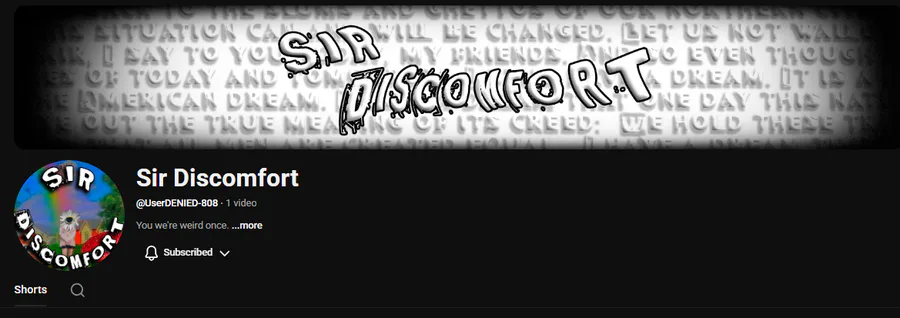 Completely unrelated... But... You can go follow my friend Sir Discomfort, who is currently working on making his dream manga (in which im gonna help too) He will also be publishing some shorts on his manga progress. https://www.youtube.com/@UserDENIED-808