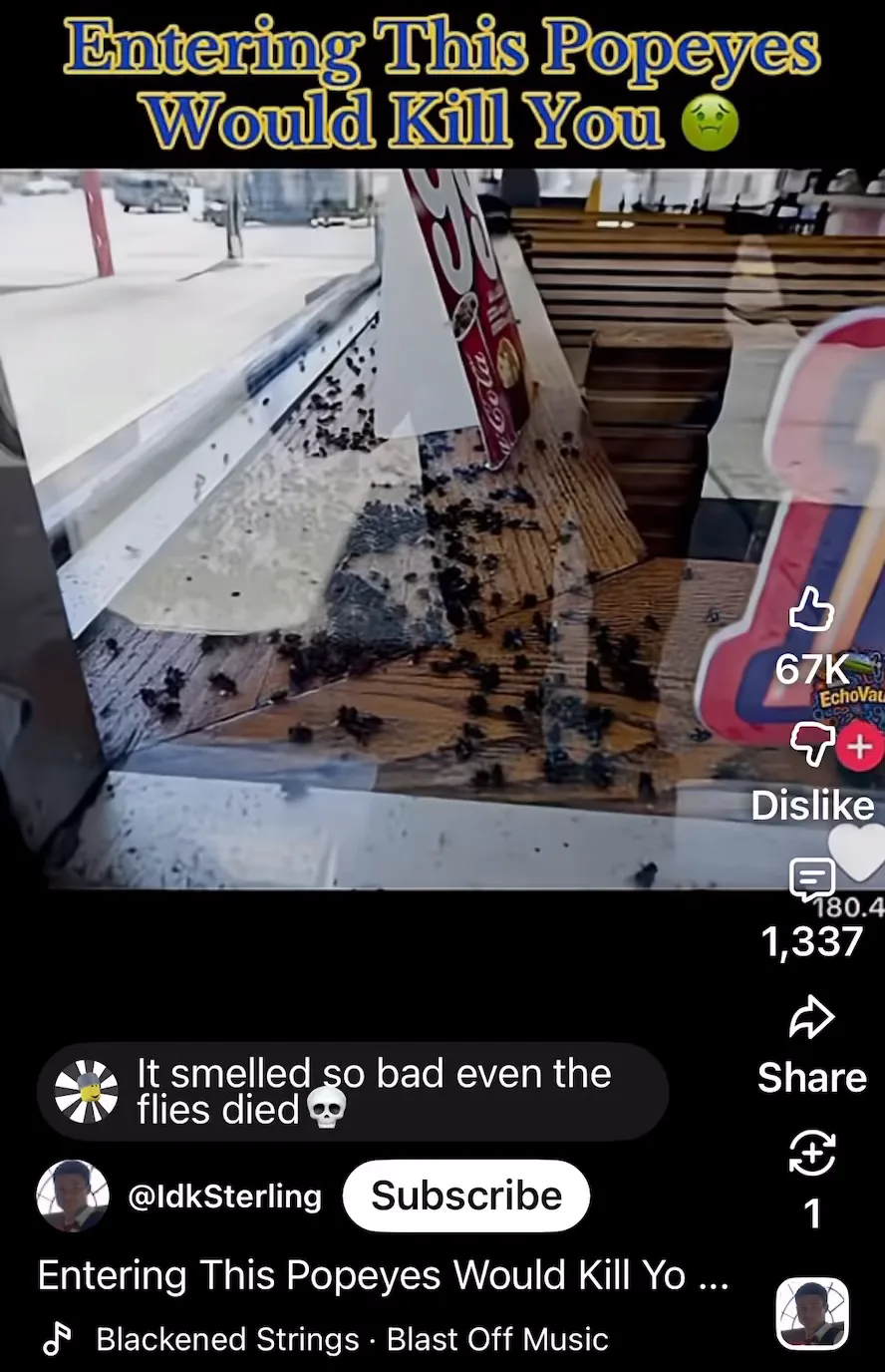 It’s just a Popeyes restaurant with rotting food that got cleaned up quickly.