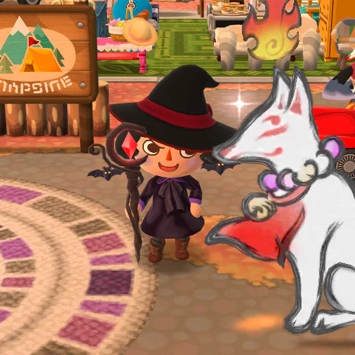 then I decided to use a mage outfit from Miitopia, but is was a mage and not a witch… so i then decided to use an outfit from Animal Crossing Pocket Camp too.