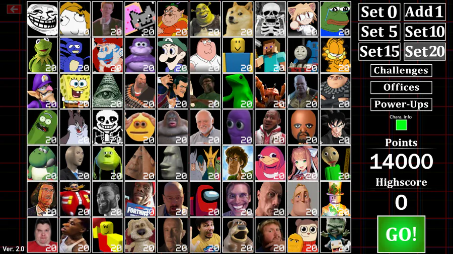 My Scratch account has turned 9 years old today so here's the new Ultimate Meme Night update! Includes 10+ new characters, new challenges, 60fps, widescreen, many balance changes and more.