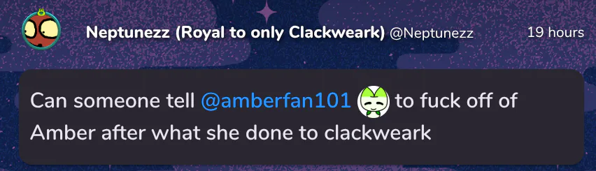 Yall might be thinking about the clackwaerk having sex, well guess what? they have made a learn the time discord server, so that way they could recover it after the pizzacord ban they had, hope yall understand that and stay safe. -Amber.