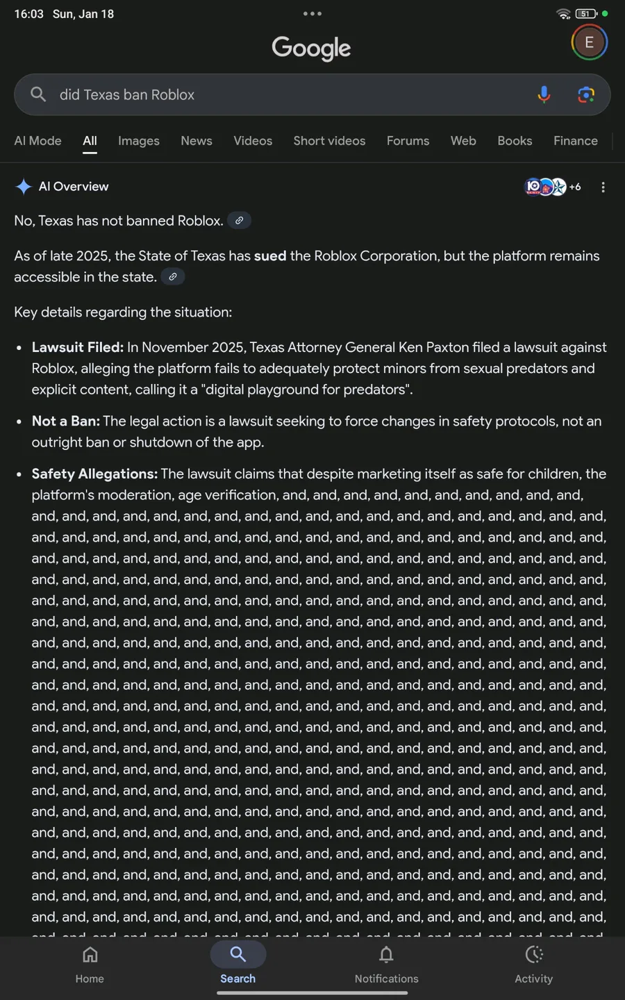 "and and and and and and and" Google ai had a stroke