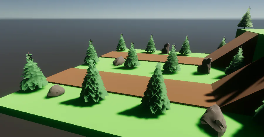 Devlog 2: Started decoration for level 1 by adding some trees and rocks. Thoughts?