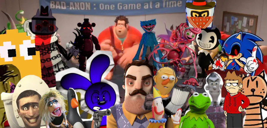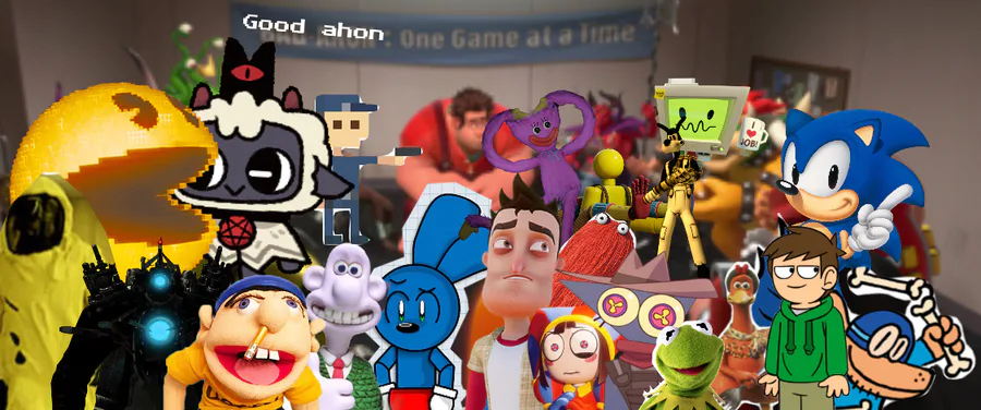 Good guys: the lamb,Pac-Man,ginger,edd,dog man,Elain,pomni,Kermit,Riggy,jeffy,camera man,backrooms human, Nicky,mike,jobbot,sonic,Ralph ,player,kissy missy,boris the wolf