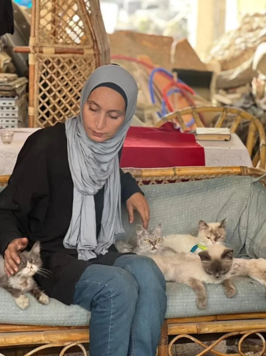 a portrait of barbook for ranya. she is an artist with seven cats, just like me. except she is surviving in g4za. please share or support ranya through her link🍉❤️