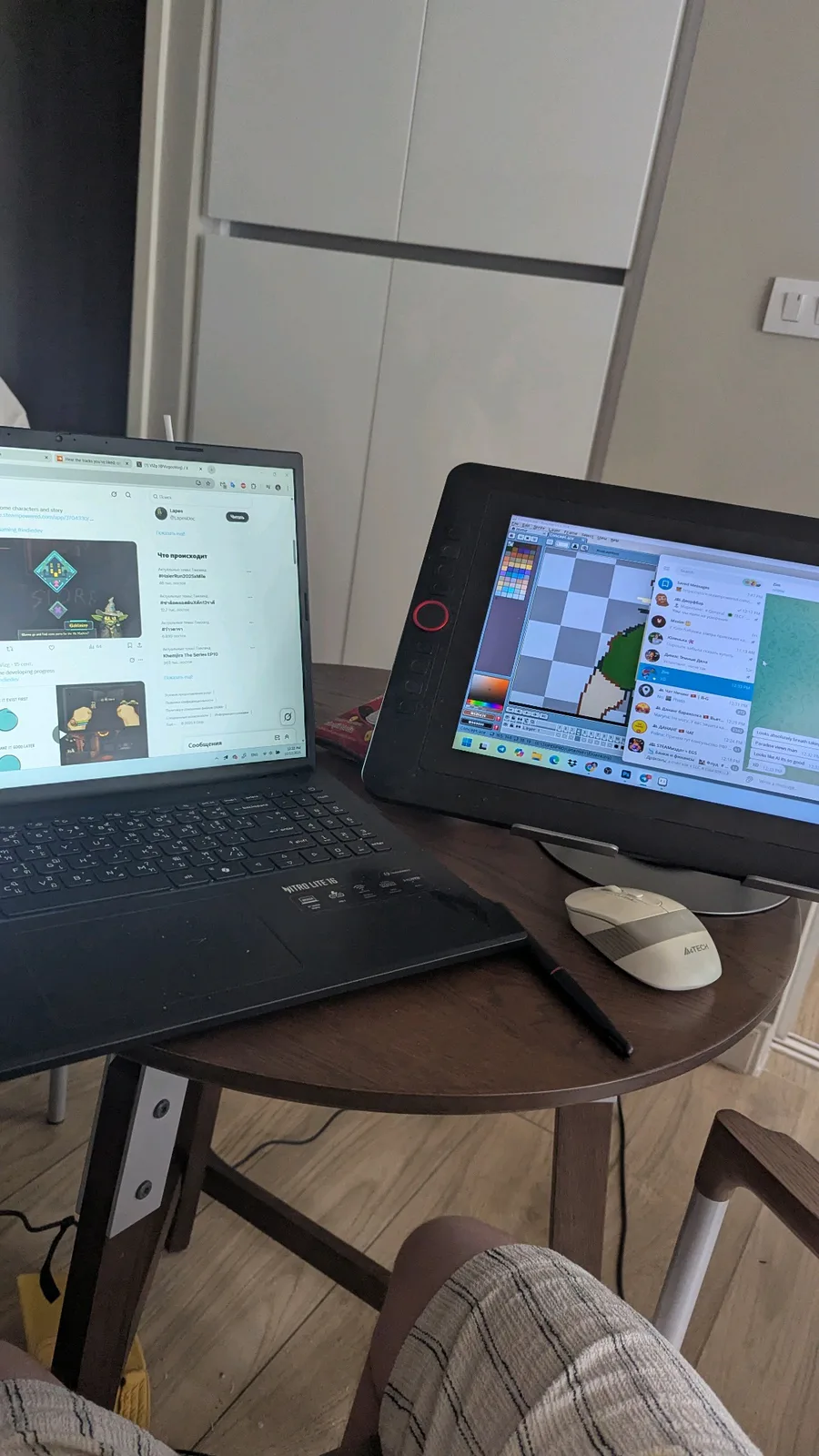 Very uncomfortable thing to work on round table. But I have not got another