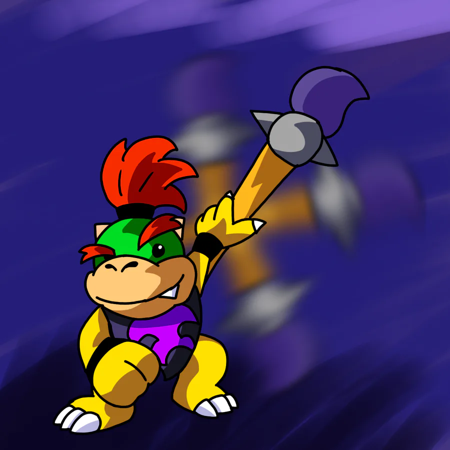 Bowser Jr with a prowler bib and king bob omb