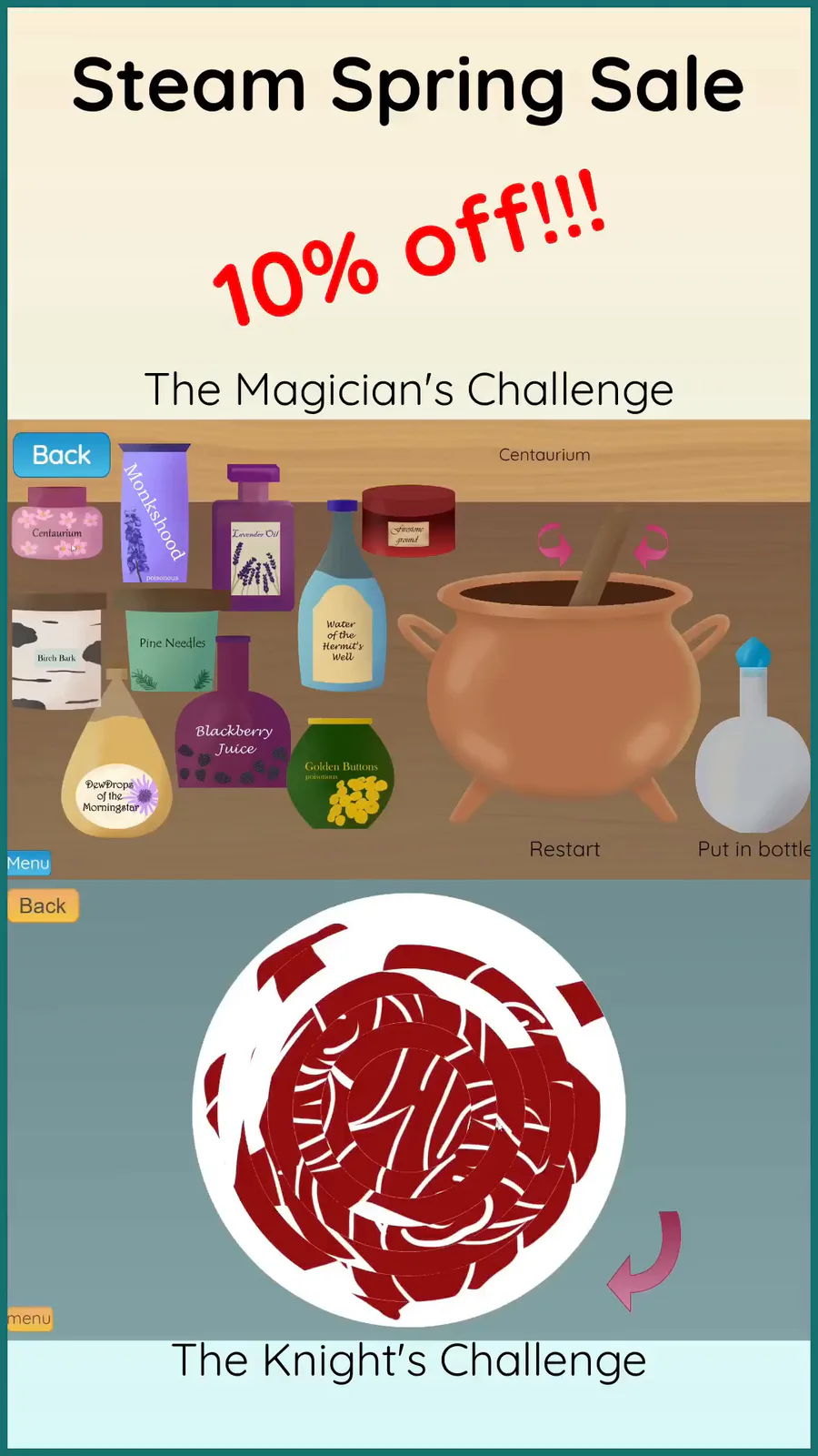 Loading...The Steam Spring Sale starts today! Get 10% off for The Magician’s Challenge and The Knight’s Challenge and puzzle your way through these escape rooms!