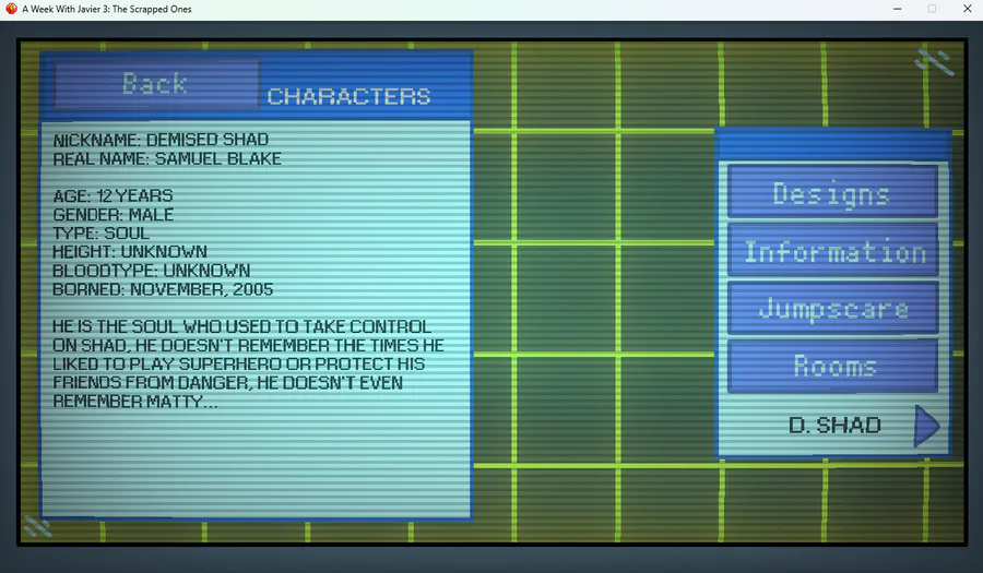 At some point of Development i was Going to add another demised character in the game being Demised Shad, i scrapped it bc the game had too many demiseds + Ugly xd