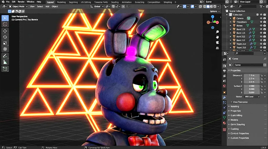 Bonnie Fan Style With Pink Light Ball Above his head with neon triangle