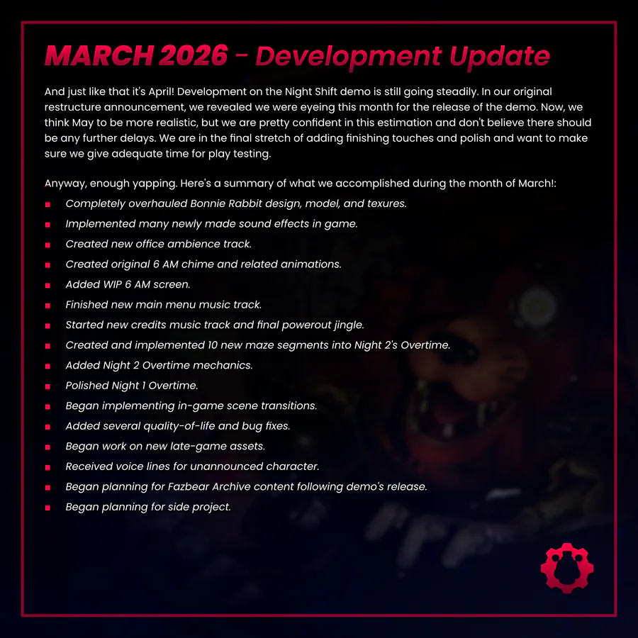 Better late than never! Here's our development update for March: