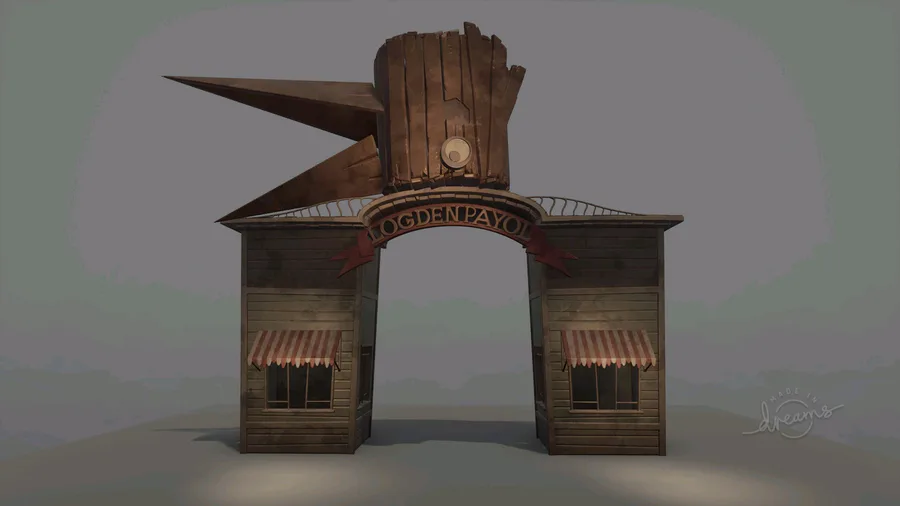 Here's some screenshots of the Entrance for the Golden Apple Amusement Park for my Hello Guest Fangame on Dreams! Will be posting more on it soon!