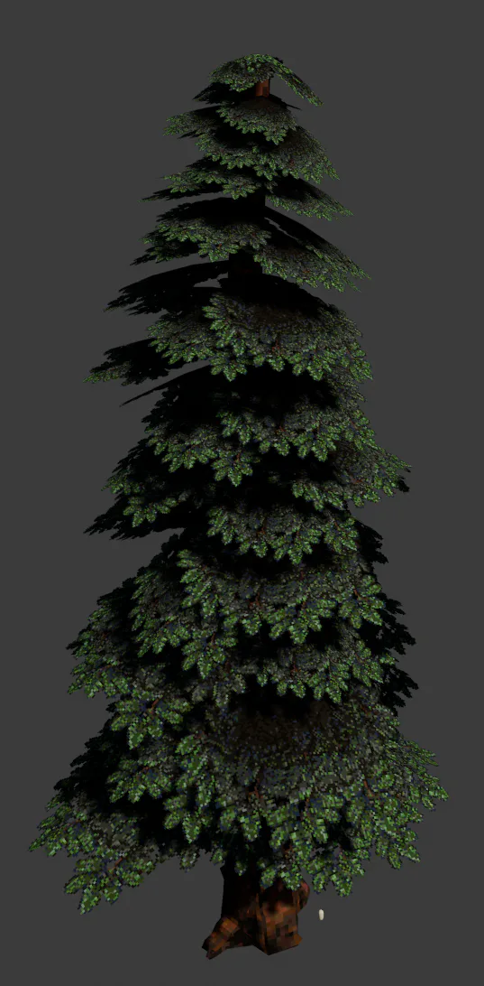 A tree for you to crash your ship into. Variable LODs on the texture, probably have to make an alternate model for the highest detail version; it has to look very good when you find yourself crashing into it...