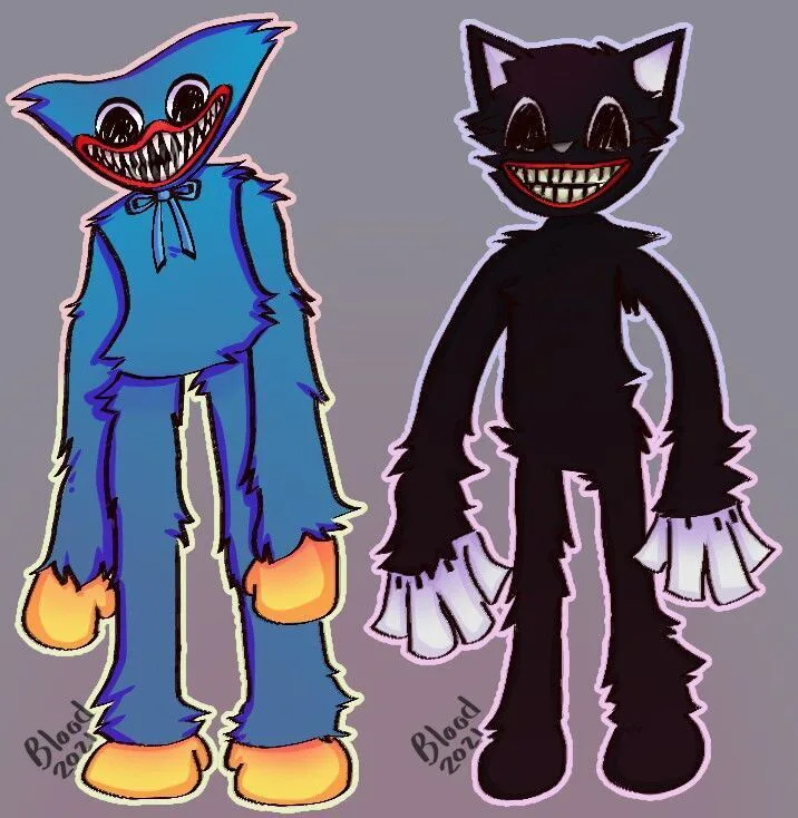 Cartoon Cat and Huggy Wuggy