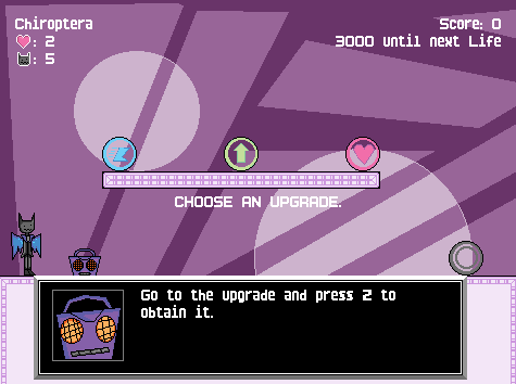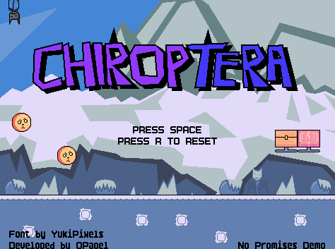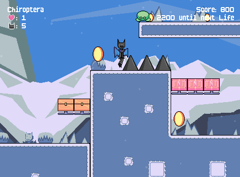 Chiroptera (kai-rop-ter-uh) is a 2D platformer roguelite where you traverse multiple acts and upgrade Froide after each one. Upgrades are kept even after all lives are gone.