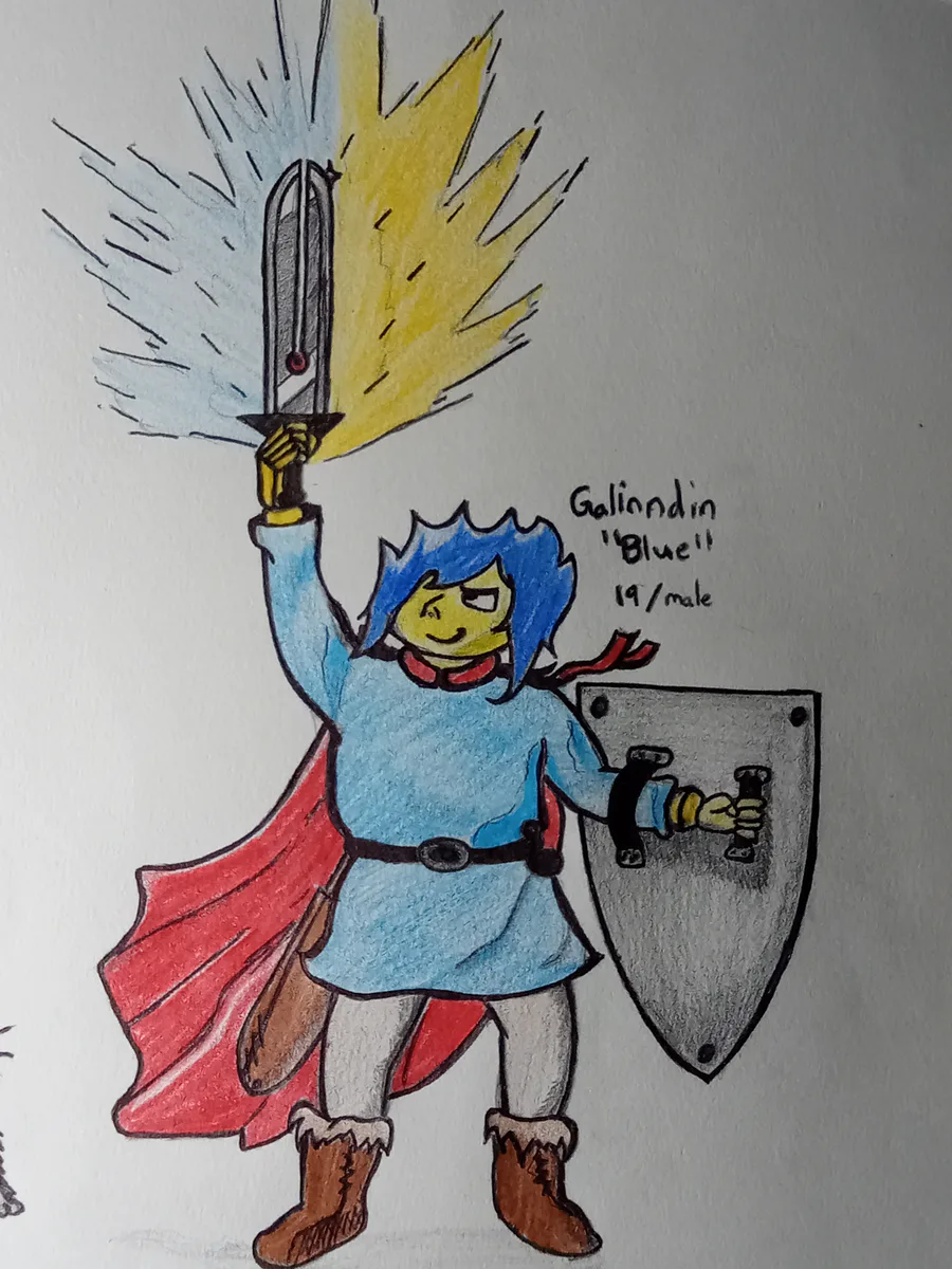 Galinndin and his Mighty sword and his ability to combine elements! After his father's capture which he didn't survive , his father's spirit imbued the sword! Granting him a spellcasting focus! Allowing Galinndin serve his father's term as defender! #art