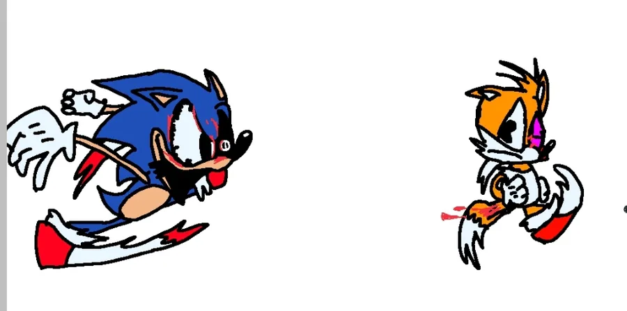 (The reason of why he is bleeding is because he ripped brutally Sonic eyes out, that why his eyes are bleeding, only using them to fool Tails)