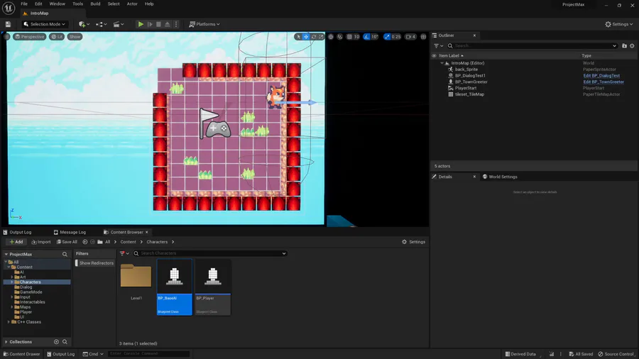 Loading...One of the first things we implemented was an ambient wander for NPCs. Technically these could be hard coded, but we opted to use Dijkstra's algorithm to generate the grid-based pathfinding. This would be needed in battle scenes, so worth doing now.