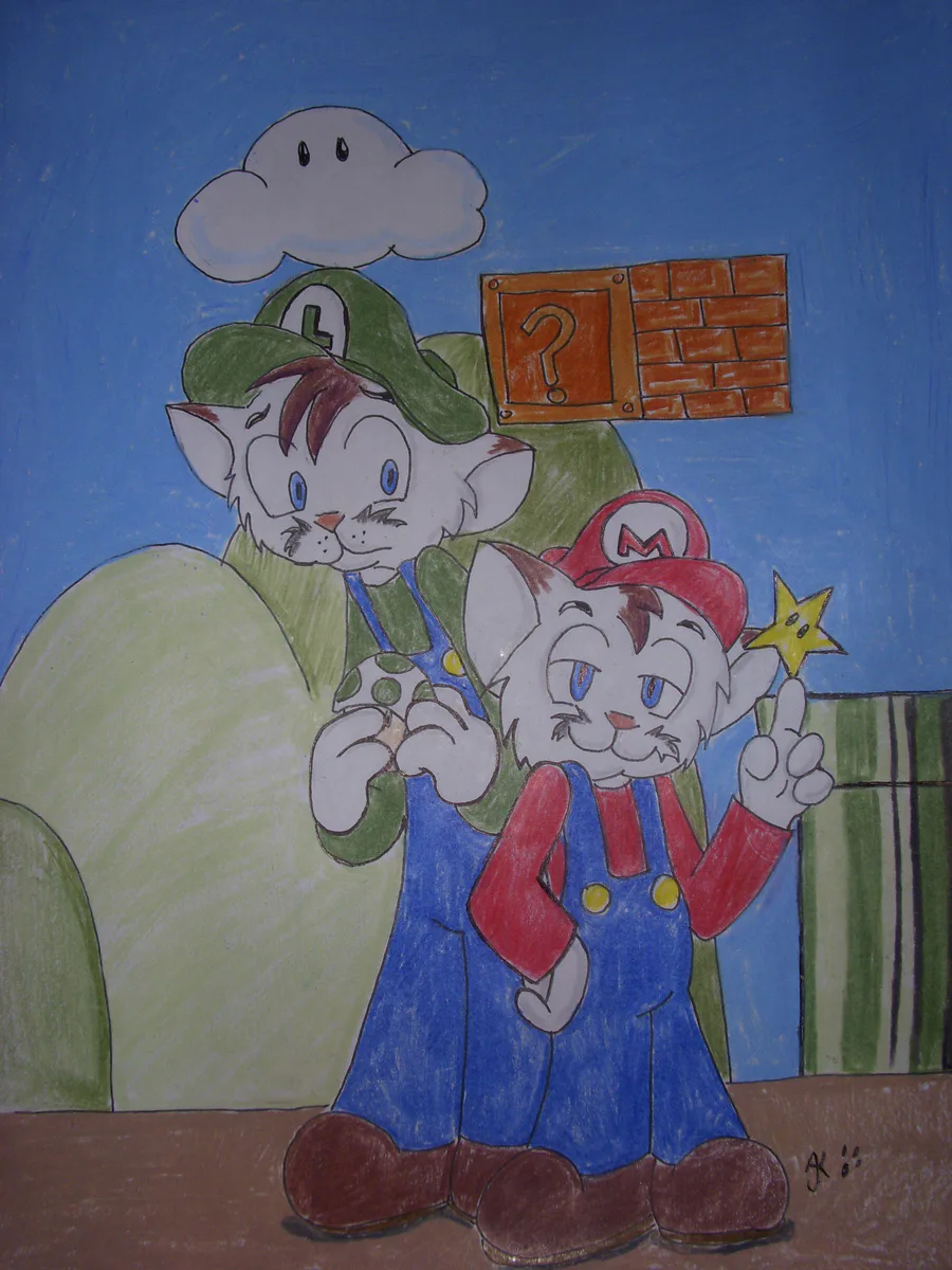 Old drawing of mine of the Bros as cats. Looking forward to the movie. :D #MarioMovie