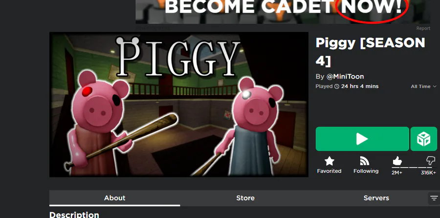 My favorite Roblox game is Piggy! The reason i love this game is that it has a interesting storyline and there are a lot of deep theory's about this game. But what i also love is that the skins in book 2 are very good and look awesome.