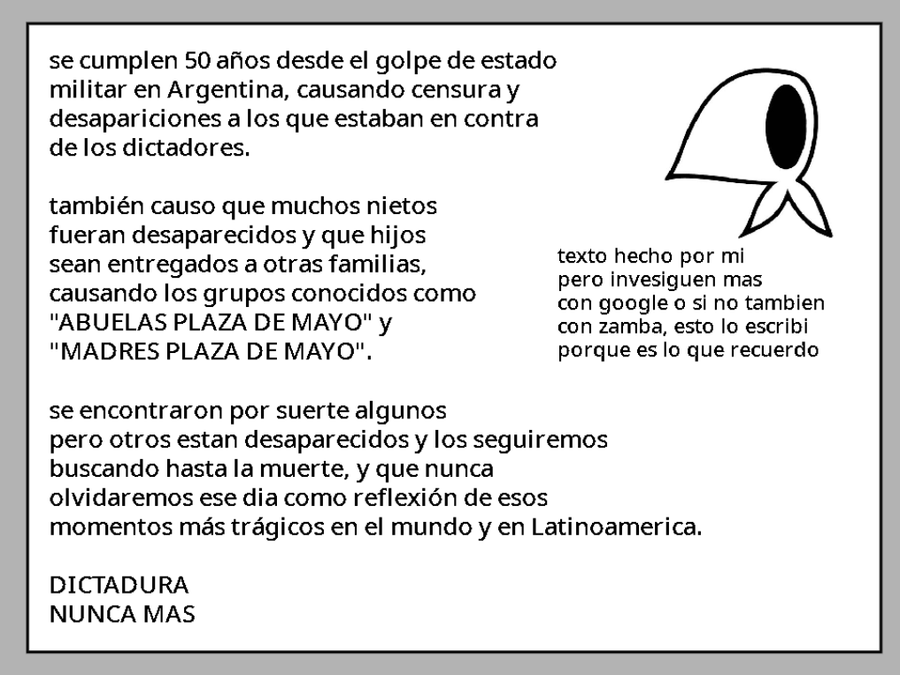 24 de marzo. Hoy se cumplen 50 años del día de la memoria por la verdad y justicia. Dictadura, Nunca Más. #NuncaMas.