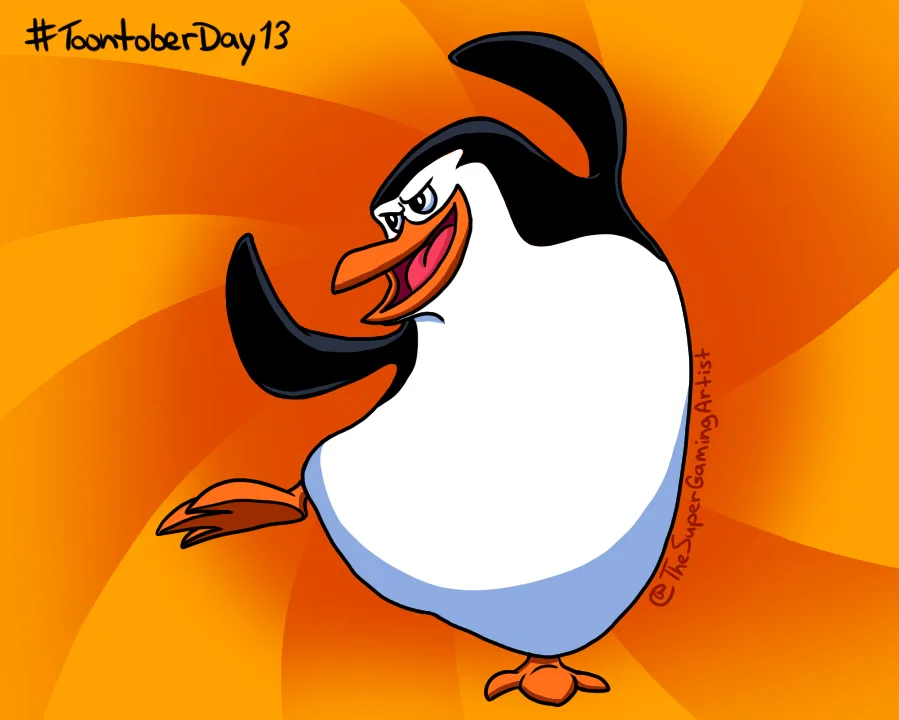 I had fun drawing him in his action pose. I know I already drew a penguin, but this is a different penguin from a different franchise.