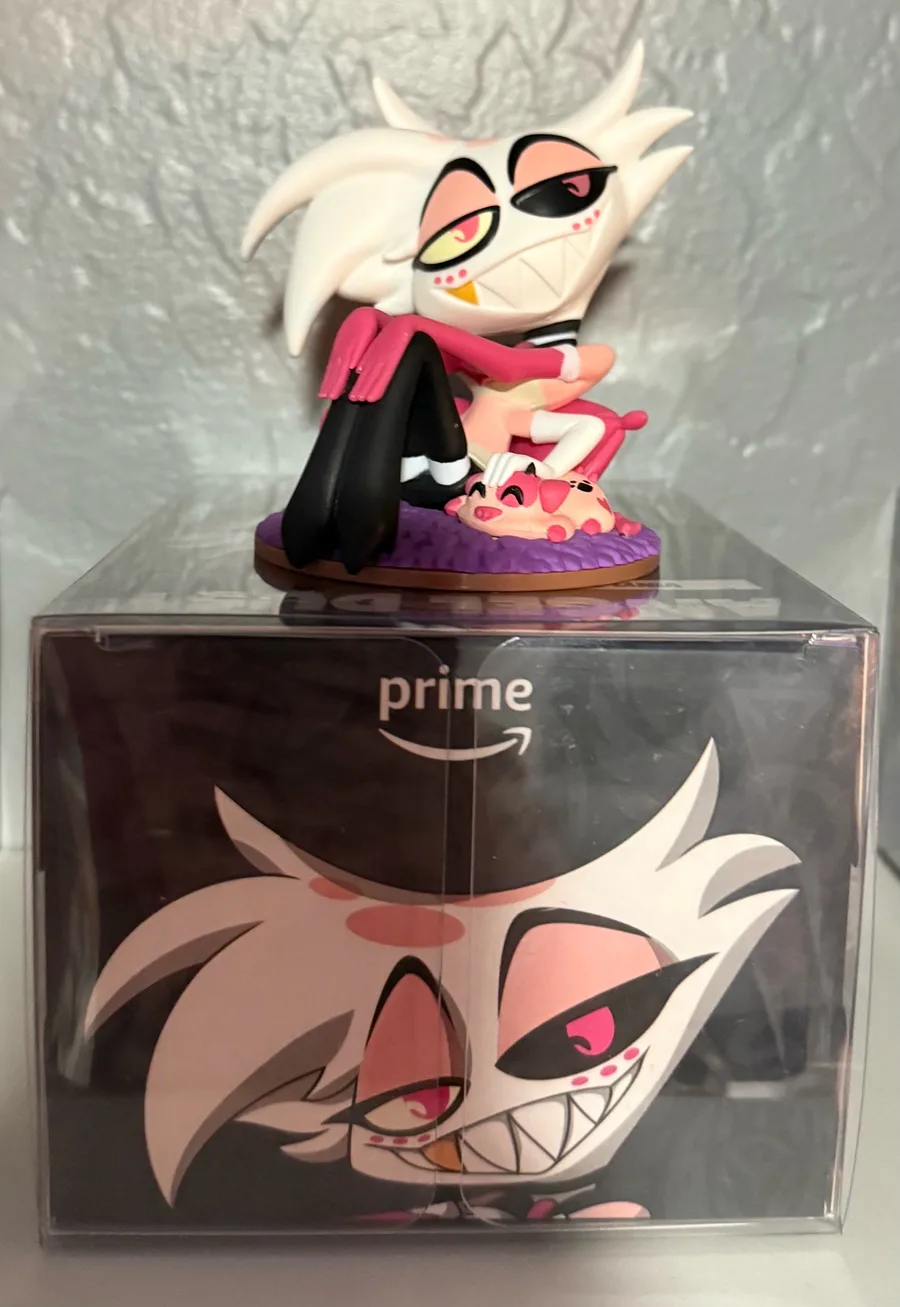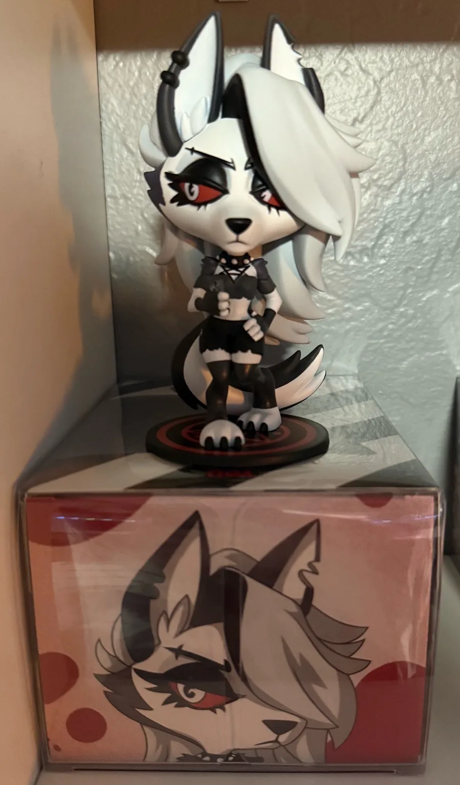 Drew my furry in the Vivziepop hellhound art style + my figures from the shows(tempted to get the Stolas one)